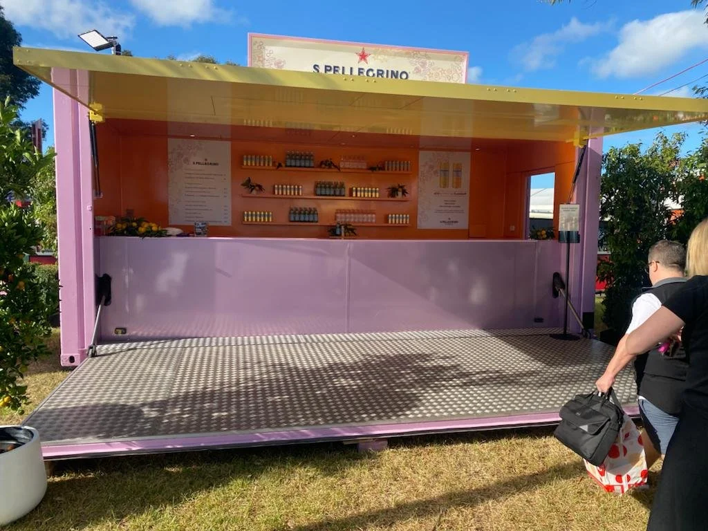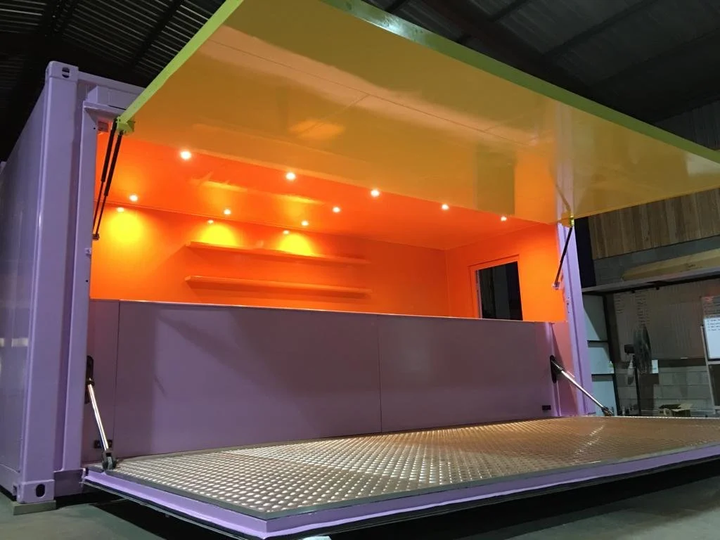 This is a 20ft High Cube container bar which offers a double footprint due to its awning/deck, as well as a half size awning and deck on rear side.