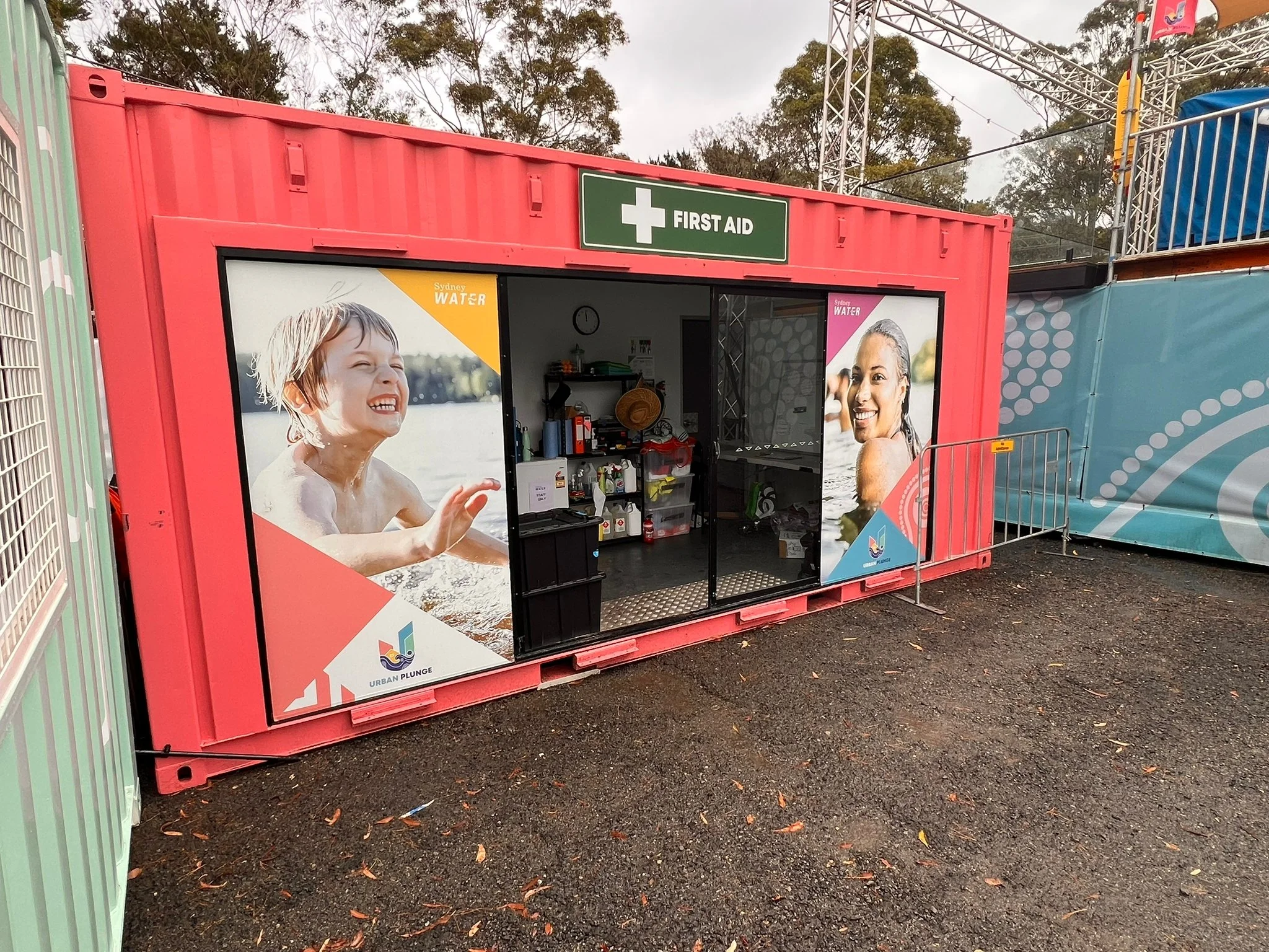 This is a 20ft High Cube container with a single PA door on its rear long wall, and glass sliding double doors on its front long face.